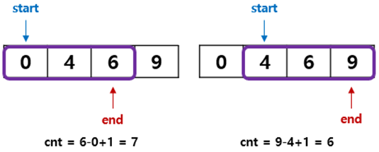 그러나 이렇게 하면 범위를 이동할 때마다 범위의 크기를 다시 구해야 하는 단점이 있기에 해당 방식이 아닌 ArrayList를 이용해 다른 방식으로 풀었습니다.