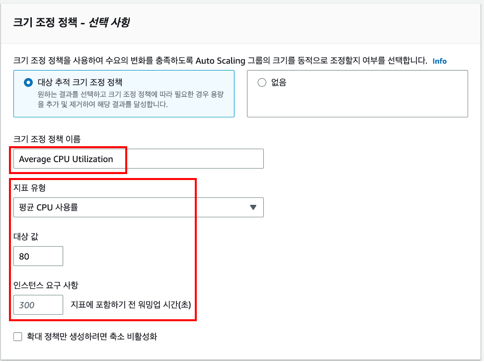 Auto Scaling을 조정하는 조건을 선택하는 옵션입니다.