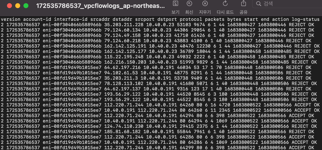 | [AWS] VPC Flow Logs로 트래픽 로그 확인하기 (0) | 2023.05.18 |