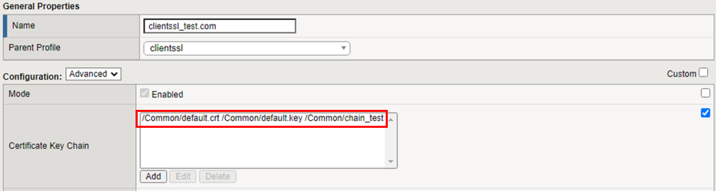 Default로 사용할 인증서의 프로파일(Default SSL Profile for SNI 옵션 체크)을 만들고 나머지 인증서의 프로파일은 Server Name 옵션을 적용해서 만듭니다.
