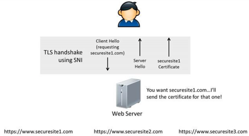 이를 위해 Client Hello 과정에서 SNI를 사용해 접속하려는 도메인 정보를 삽입하여 보냅니다.