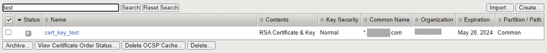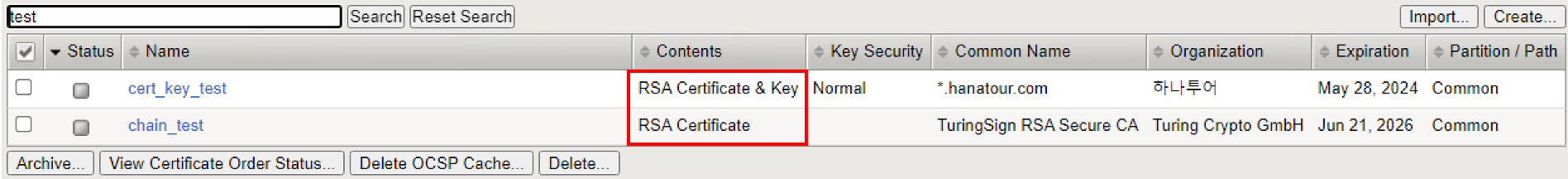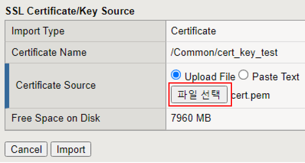 2. Import 클릭하여 인증서 및 키 파일을 등록