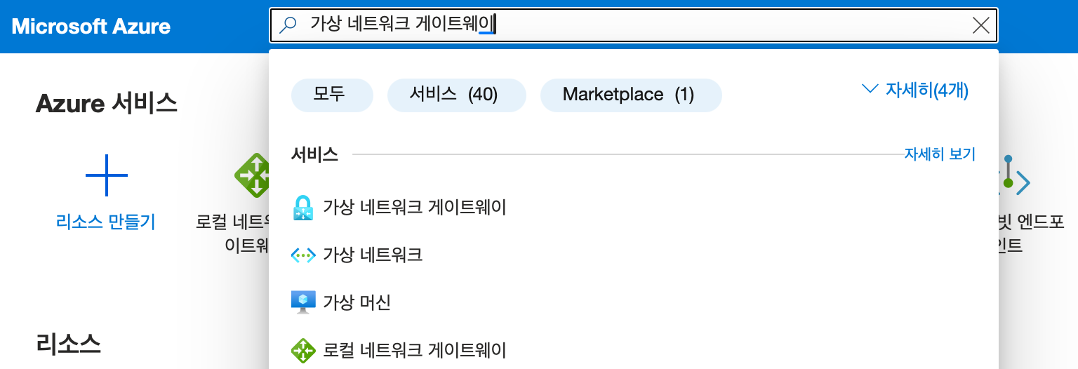 상단 검색 창에서 '가상 네트워크 게이트웨이' 검색합니다.