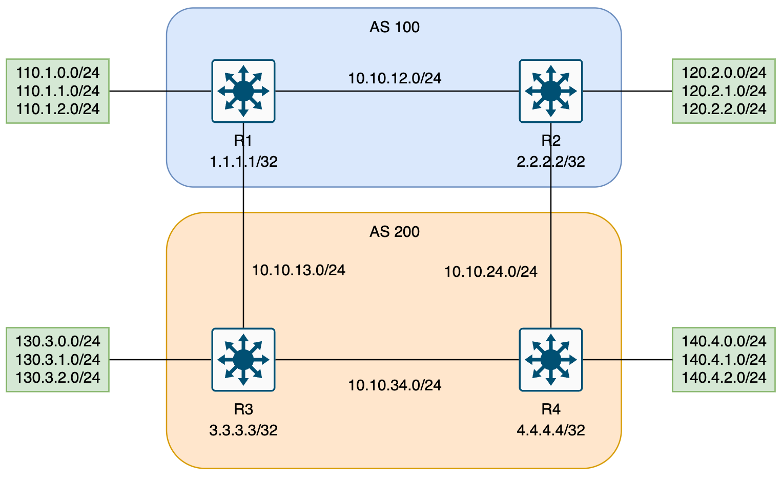 *> 110.1.2.0/24 10.10.24.2 0 200 0 100 i