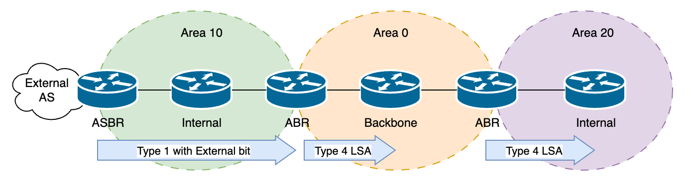 - 외부 라우팅 정보(LSA Type 5)를 다른 Area에서 사용할 수 있게 하기 위해 ASBR까지 도달할 경로 정보를 광고합니다.