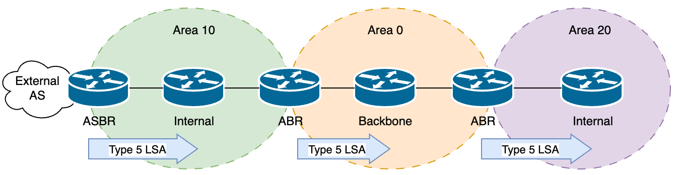 - OSPF 네트워크 내 어디로든 전파되며, 외부 네트워크에 대한 경로 정보를 담고 있습니다.