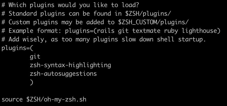 plugins=(git zsh-autosuggestions zsh-syntax-highlighting)