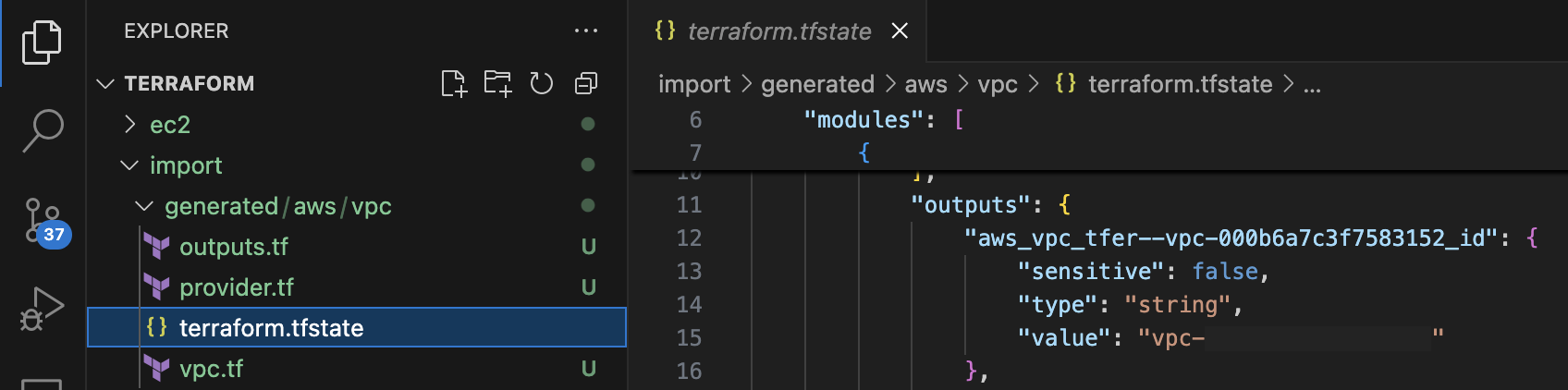 다시 `terraformer import` 명령어를 실행하면 아래와 같이 파일들이 생기면서 기존 aws 리소스가 .tfstate 파일로 import된 것을 확인할 수 있습니다.