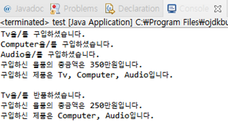 - 모든 제품클래스의 조상인 Product클래스 타입의 배열을 사용함으로써 구입한 제품을 하나의 배열로 간단하게 다룰 수 있다.