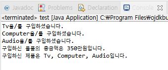 System.out.println("구입하신 물품의 총금액은 " + sum + "만원입니다.");