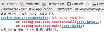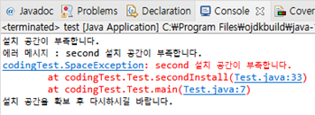 if(!enoughSpace()) throw new SpaceException("second 설치 공간이 부족합니다.");