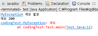 - 그리고 이 예외를 호출한 main메서드로 넘겨줌으로써 main메서드의 try-catch문에서도 처리되었다.