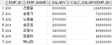EMP_ID를 전달받아서 연봉을 계산해 출력하는 함수