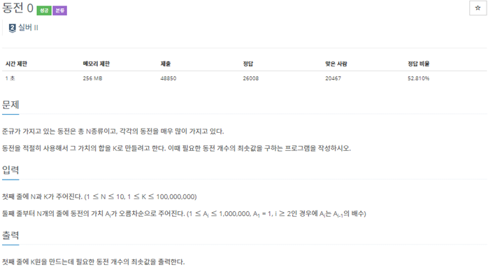 coin[i]=Integer.parseInt(br.readLine()); //동전 단위