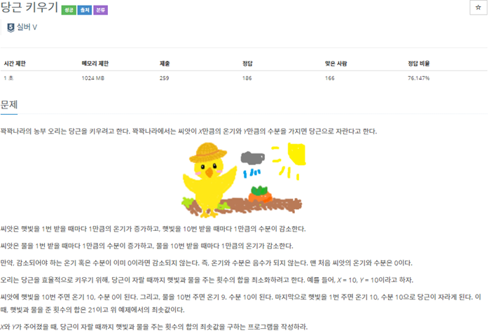// 20363번 - 당근 키우기