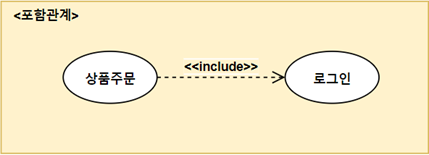 - 포함 관계: 유스케이스를 실행하기 위하여 반드시 실행되어야 하는 유스케이스가 존재하는가?