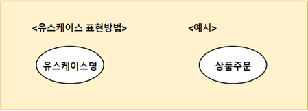 사용자의 입장에서 바라본 시스템의 기능들을 정의합니다. 시스템의 요구사항을 타원형으로 표기합니다.