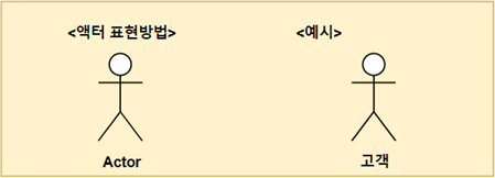 시스템을 사용하는 주체가 되는 액터이며 사람 형태의 모형으로 표기합니다. 시스템의 왼쪽에 그리며 하단 또는 상단에 액터의 역할을 작성해줍니다.